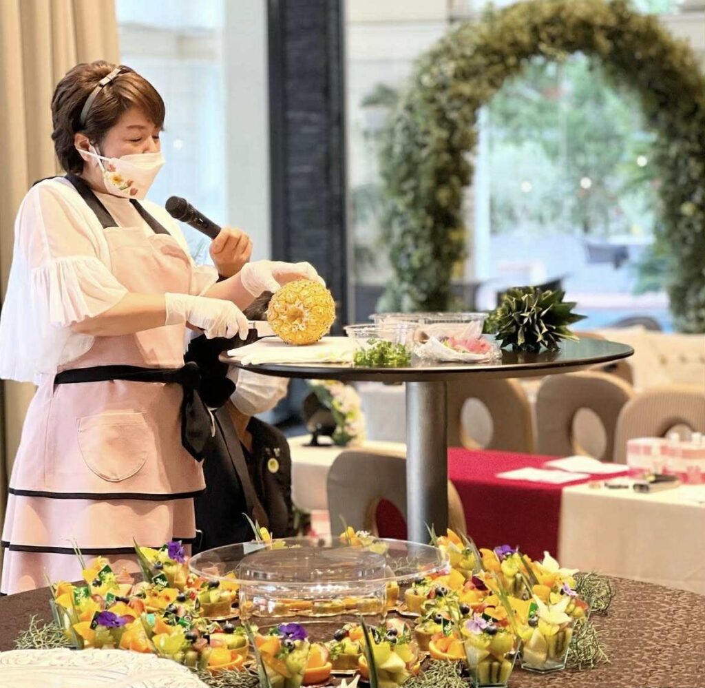 私がフルーツカッティングデモンストレーションをしてる状態に胸が熱くなりました。