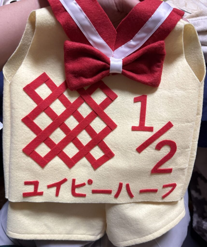 ブログ 作品 半年(6ヶ月)の写真用 2026.03.19 可愛いお孫さんの写真撮影に使いたいとご相談がありましたので、作らせていただきました。男の子なのでズボンタイプにしました。 撮影写真も見せてもらって、とても可愛かった。帽子のトマトと本当に可愛かったです。 バルーンリメイク 前の記事