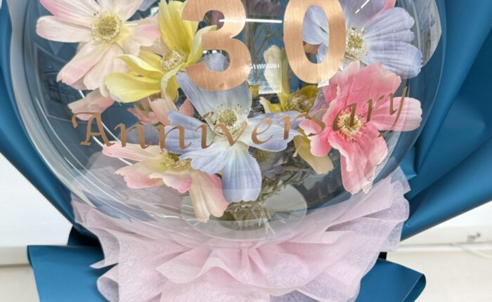 作品 30周年 お祝い 2026.04.09 お花の希望をお聞きして制作しました。4月1日に、周年を迎える事業所さんへの贈り物です。中のコスモスが淡い色なのでラッピングは、中の花が分かりやすいように濃い色にしました。喜んでいただけて嬉しかったです。 娘からのリクエスト 前の記事