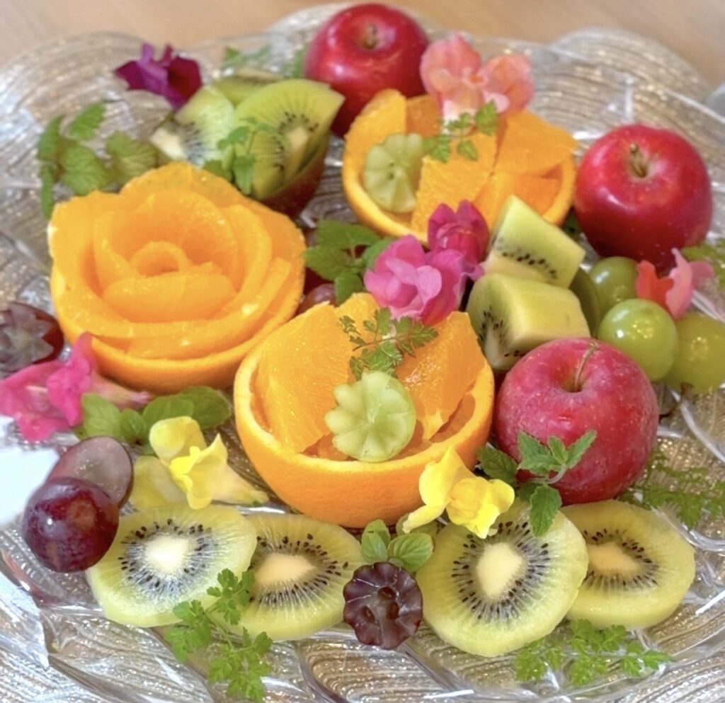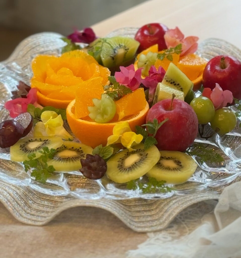 フルーツカッティングにエディブルフラワーを加え、華やかで可愛く仕上げる フルーツカッティングレッスンです。