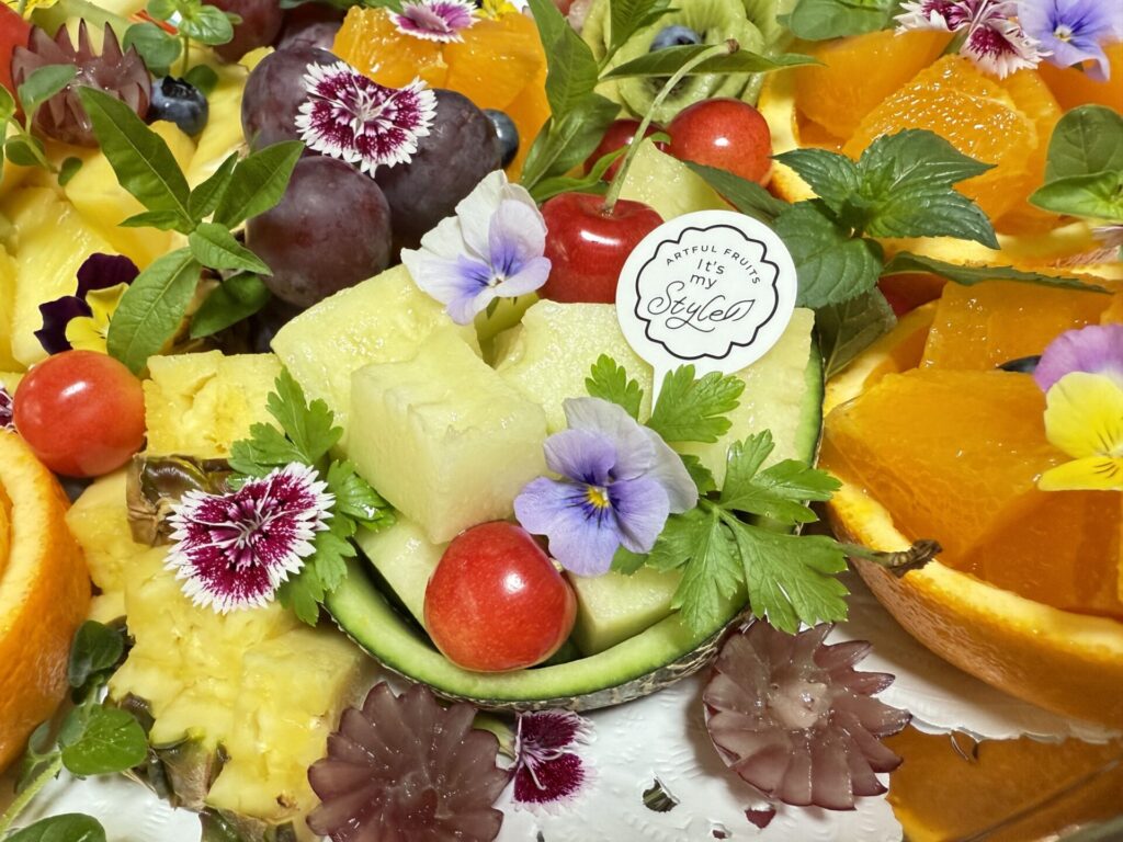 フルーツカッティングにエディブルフラワーを加え、華やかで可愛く仕上げる フルーツカッティングレッスンです。
